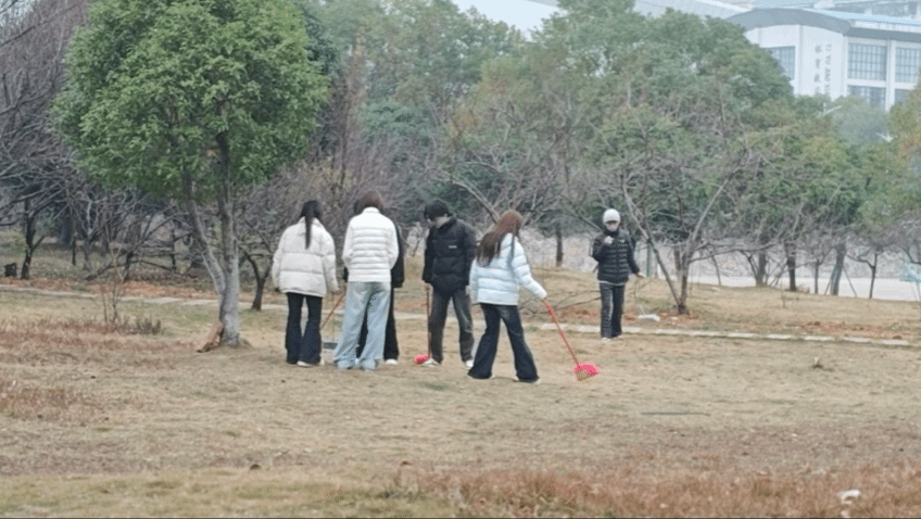 活动伊始,学生们早早集合,领取清洁工具后迅速投入行动。大家分工明确,有的拿扫把清理草坪中的垃圾,有的拿簸箕手机随处可见的垃圾,有的俯身拾起草坪中隐藏的垃圾。凉风下,学生们忙碌的身影构成一幅美丽的画卷,用实际行动诠释着劳动的奉献精神。