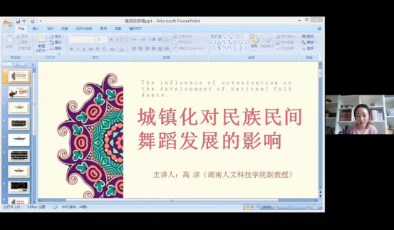 为庆祝中国共产党成立100周年,北京舞蹈学院于11月1日-3日举办了以“为人民而舞--中国舞蹈艺术发展之路”为主题的BDA舞蹈论坛,beat365正版唯一官网必一音乐舞蹈学院高洁副教授受邀参加,并在“百年征程中民族民间舞蹈的社会构建与政治功能”分论坛上作《城镇化对民族民间舞蹈发展的影响》主题发言。