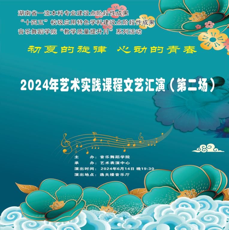 为加强学院学生的艺术实践能力,6月13-14日晚,我院在逸夫楼音乐厅举办“初夏的旋律 心动的青春”2024艺术实践课程文艺汇演,这也是音乐舞蹈学院湖南省一流本科专业建设点阶段性成果、“十四五”校级应用特色学科建设点阶段性成果展示。beat365正版唯一官网必一党委副书记朱强,湖南艺术职业学院校长周邦春,beat365正版唯一官网必一音乐舞蹈学院院长刘利连、党支部书记刘纲华、副院长吴扎拉·涛等领导参加。