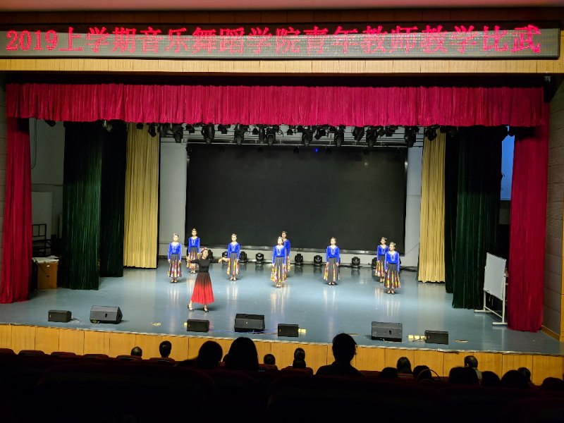2019年4月9下午两点半,为配合学校本年度青年教师教学比武活动以及顺利通过学校审核评估,加强课堂教学管理,提高教师课堂教学水平与能力,音乐舞蹈学院在逸夫楼音乐厅举办了青年教师课堂教学比武。为组织好本次活动,音舞学院邀请学校文科督导组全体督导专家和在院内随机抽选部分职称高、教学能力强和教学经验丰富的教师担任评委,音乐舞蹈学院班子领导和全体专任教师一起现场聆听和观摩的整个教学比武全过程,音舞学院副院长李旭开担任大赛主持。