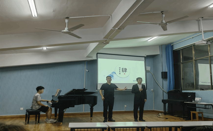 向章元老师从词、曲的创作背景出发,深刻剖析歌曲蕴涵的爱国主义的思想感情,结合歌曲旋律阐述了演唱时的情感表达。讲座最后向章元老师携手谢旭光同学深情演绎了该作品。