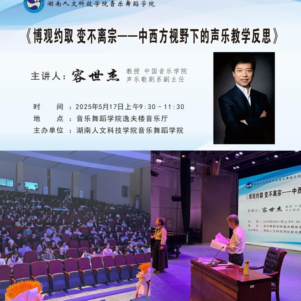 此次讲座既是一场学术思想的深度交流,更是一次对学院声乐专业建设的精准赋能。容世杰教授高屋建瓴的学术见解与实践经验分享,不仅拓宽了师生的学术视野,更为学院声乐学科在教学体系优化、课程建设创新、人才培养模式改革等方面提供了宝贵思路,对推动学院声乐专业高质量发展、提升学科影响力具有重要意义。未来,音乐舞蹈学院将持续深化对外学术交流,以更高标准推动学科建设迈向新台阶,为培养兼具理论素养与艺术实践能力的复合型音乐人才注入强劲动力。