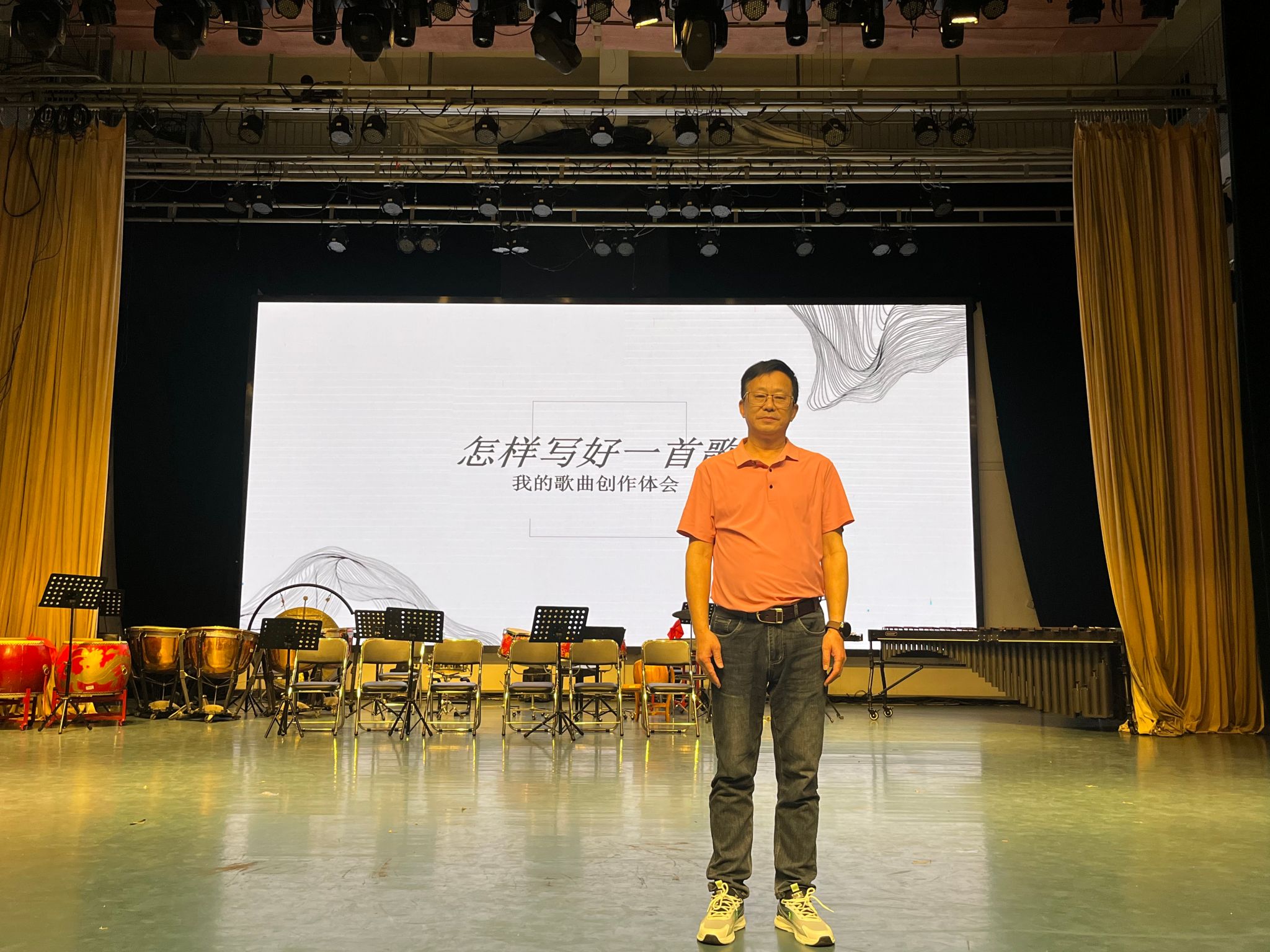 讲座伊始,谢教授从“主题的写作”切入,强调“因情因景而生”是创作的核心出发点。他阐释了如何将个人情感与生活场景转化为旋律动机。此外,谢教授还以《梦中常恋在云南》《祖父祖母》等经典民歌为例,深入探讨“如何挖掘传统音乐元素”,并现场演示了如何将民歌的节奏、调式与现代编曲手法融合,赋予作品独特的文化底蕴与时代气息。在“主题的发展”环节,谢教授结合多首曲子的谱例,拆解了“重复”与“变奏”手法的巧妙运用。同时,他还分享了“模进”“对比”“碎片化展开”等进阶技巧,并邀请观众即兴参与旋律改编互动,现场气氛热烈。参与者纷纷表示,这种理论与实践结合的方式,让抽象的概念变得直观易懂。关于“歌曲的布局”,谢教授提出“结构服务于意境”的理念。他以校园民谣、摇滚史诗等不同风格作品为例,对比了主歌-副歌、叙事性段落等布局方式的适用场景。他特别提到,许多创作者容易忽视“留白”的重要性,并现场播放了一首未完成的曲子,引导观众思考如何通过精简段落增强作品的张力与回味空间。