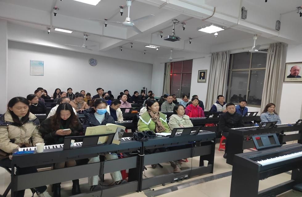 11月12日,湖南涉外经济学院音乐学院公共艺术系主任彭翔于我院举办2场题为《高校音乐专业课程信息化教学改革设计之我见》和《应用型钢琴即兴伴奏教学探讨》的学术讲座。讲座由党总支书记刘纲华主持,学院全体教研室主任及教师代表参加讲座。