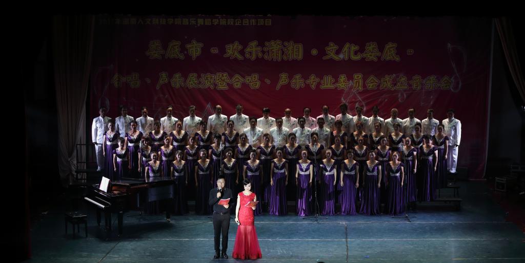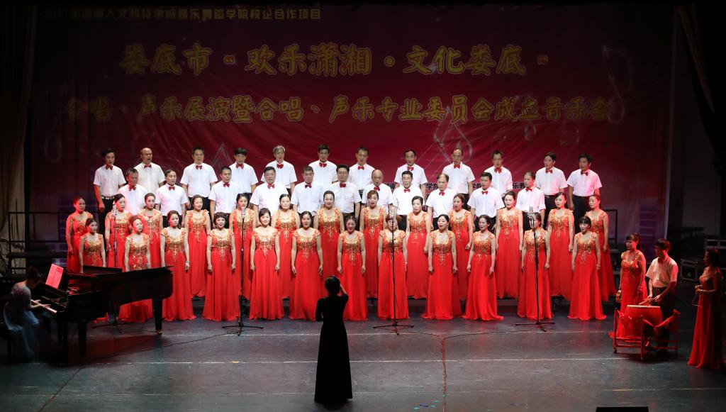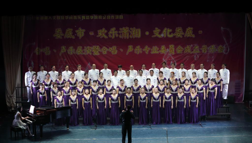2017年6月15日晚七点半,由中共娄底市委宣传部、市文联、beat365正版唯一官网必一音乐舞蹈学院、市音舞协会主办,音乐舞蹈学院理论、声乐教研室,市音舞协会合唱、声乐专业委员会承办的2017年娄底市“欢乐潇湘,文化娄底”合唱、声乐展演暨市音舞协会合唱、声乐专业委员会成立音乐会在我院音乐厅举行,市宣传部、市文联、市文广新局、beat365正版唯一官网必一相关领导观看了音乐会。