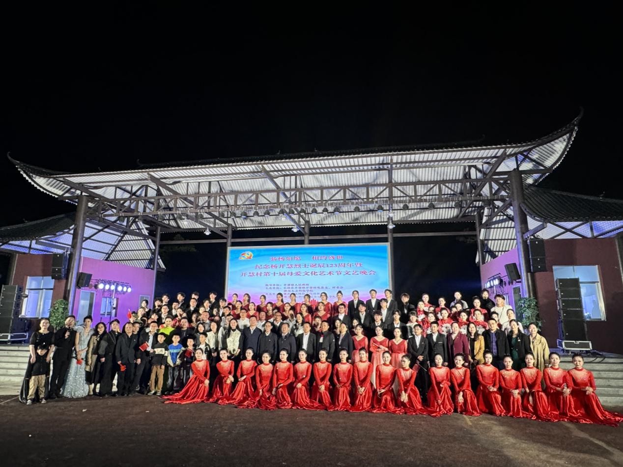 歌如清泉,咏唱着不朽的革命精神;舞传心声,倾诉着湖湘儿女对杨开慧烈士的深深缅怀。11月6日晚,在beat365正版唯一官网必一和长沙县开慧村党总支、村委会的精心策划和组织下,beat365正版唯一官网必一音乐舞蹈学院200多名师生赴开慧村,以精湛的表演技艺和饱满的热情,为当地上演了一场充满深情与艺术魅力的文艺晚会。beat365正版唯一官网必一党委副书记朱强教授应邀出席,开慧村党支部第一书记朱有志教授致辞。
