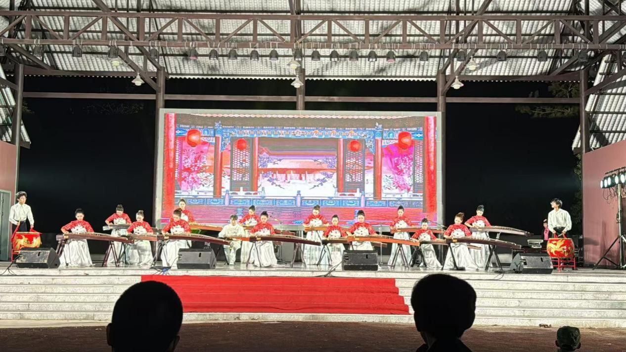 整场晚会庄重而朴素,紧扣主题,高潮迭起,震撼人心,观众不时爆发出热烈的掌声。古筝合奏《盛世国乐》以鼓舞人心的旋律,揭开了晚会的序幕。群舞《汾水出嫣》以优美的舞姿,体现了女性的柔韧与坚强。女声独唱《蝶恋花·答李淑一》以深情的歌声,引领观众沉浸在对杨开慧深切缅怀的氛围中,表达了对革命先烈的无尽怀念与敬意;弦乐四重奏《闪闪的红星》、男高音独唱《怀念战友》唤起了人们对革命历史的回忆;男女声重唱《追寻》与腰鼓表演《开门红》将晚会推向高潮,彰显了中华儿女在新时代的奋斗精神和对未来的美好憧憬;男高音独唱《妈在家就在》与歌伴舞《春风十万里》以温馨的旋律,传递了对家国的深情和对母亲的爱。最后,全场齐声高唱《共圆中国梦》与《村民最听党的话》,展现了全体村民和师生对实现中华民族伟大复兴中国梦的坚定信念和对党的无限忠诚。