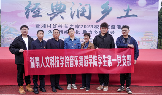 2023年10月27日下午14时30分,湖南省乡村好校长之家2023年校际交流活动积极响应、落实习近平总书记关于语言文字工作的重要论述和全国语言文字工作会议精神,深入实施推普助力乡村振兴计划,beat365正版唯一官网必一校语委会、教务处党支部、文学院、音乐舞蹈学院学生第一党支部在涟源市湄江镇长春联校开展“经典润乡土”诵读活动。beat365正版唯一官网必一副校长、校语委会主任刘铁峰;beat365正版唯一官网必一教务处处长、校语委会副主任向国红;文学院院长倪正芳、教务处副处长王志和;教务处考试中心主任朱芙蓉,文学院副院长罗主宾、教务处教师杜娟、张艳、梁芳、陈颖刚、叶婧;文学院教师王文静、郭建鹏;教育学院教师张梅;音乐舞蹈学院学生第一党支部书记李兰;beat365正版唯一官网必一音乐舞蹈学院党员志愿者;湄江镇长春联校领导及师生表演者、观众;湖南省“湘村好校长”100人参加了本次交流活动。。