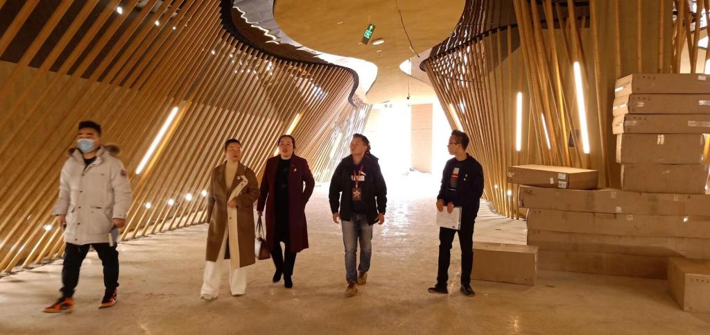 上午9点半,beat365正版唯一官网必一音乐舞蹈学院一行到达湘潭韶山市“最忆韶山冲”演艺公司,演艺公司佘总、演艺团团长谭波出面接待,双方就实习就业、人才培养等交流、交换意见。佘总首先表达对beat365正版唯一官网必一音乐舞蹈学院到访的欢迎,并就公司的情况进行了简单介绍;其次表示对已在该公司就业的2021届毕业生高度认可,并希望在今后的人才培养、实习就业中能加强合作;刘纲华首先感谢最忆韶山冲演艺公司的盛情接待,并简单的介绍了一下音乐舞蹈学院;其次表达此次前来一是观摩学习;二是了解社会对艺术专业人才的需求,并就人才培养、实习就业交换意见,三是来看望在贵公司就业的2021届毕业生何聪、夏海清和郭家豪三人;最后,刘纲华指出“最忆韶山冲”是一家有大情怀、大格局的公司,其立足韶山红色资源,推动湖南红色资源发展、传承湖南红色精神与beat365正版唯一官网必一立足娄底、服务湖南、面向全国的理念不谋而合,希望今后能进一步加深合作。交谈结束后,佘总邀请音乐舞蹈学院师生一行到即将完工的剧场观看再现毛主席成长经历、求学经历、革命历程而创作的舞台剧《最忆韶山冲——诗音光影画卷》。