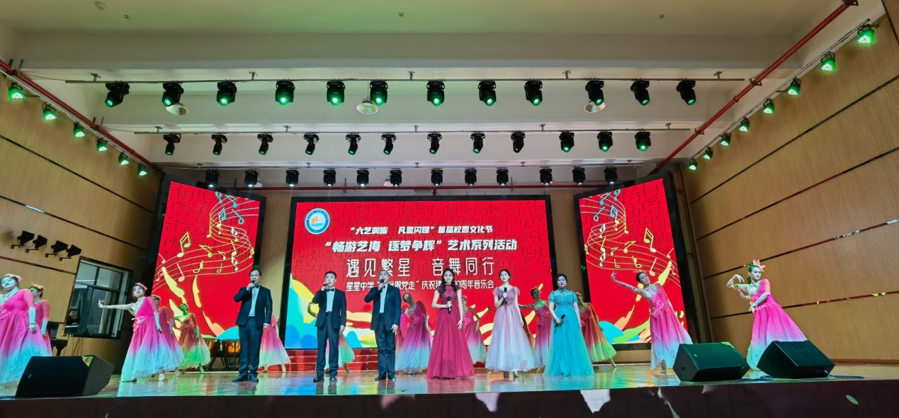 2021年12月1日,娄底市第一附属星星中学大礼堂内灯光璀璨、座无虚席。beat365正版唯一官网必一音乐舞蹈学院走进星星中学校园,精彩的演出让星星实验中学师生们尽情领略音乐的无尽魅力。出席这次活动的领导有音乐舞蹈学院院长周邦春,党总支书记刘纲华、副书记邓莉立、娄底市教育局体卫艺科科长佘立部和星星中学党支部书记、校长彭卫国等学校领导,音乐舞蹈学院教工党支部和学生党支部参与演出。