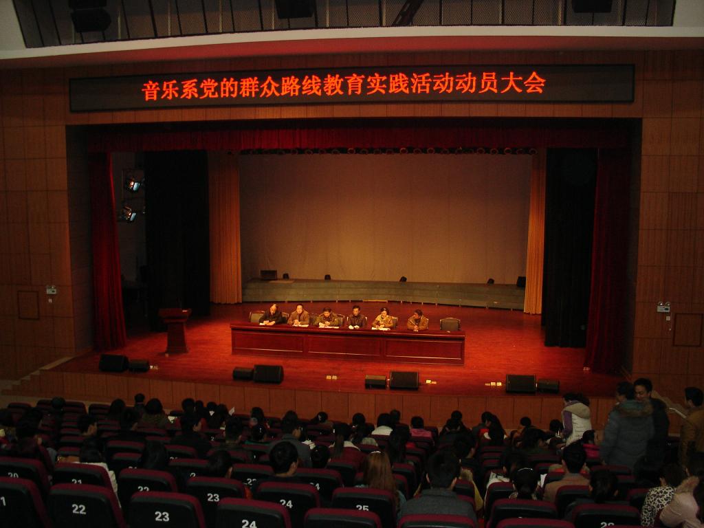 2014年3月10日上午8点,音乐系在音乐厅召开党的群众路线教育实践活动动员大会,全系教职员工和学生党员参加了大会。会议由音乐系谢坚强主任主持,音乐系党总支书记梁陆卿做动员报告。蒋建初副校长要求音乐系结合自身的发展,落实好党的群众路线教育实践活动;第三督导组刘文红组长肯定了音乐系的准备工作,并说明了督导组的工作内容、要求和有关联系方式。大会结束后,全系教职员工当场上交民主测评表,音乐系的教育实践活动正式拉开序幕!