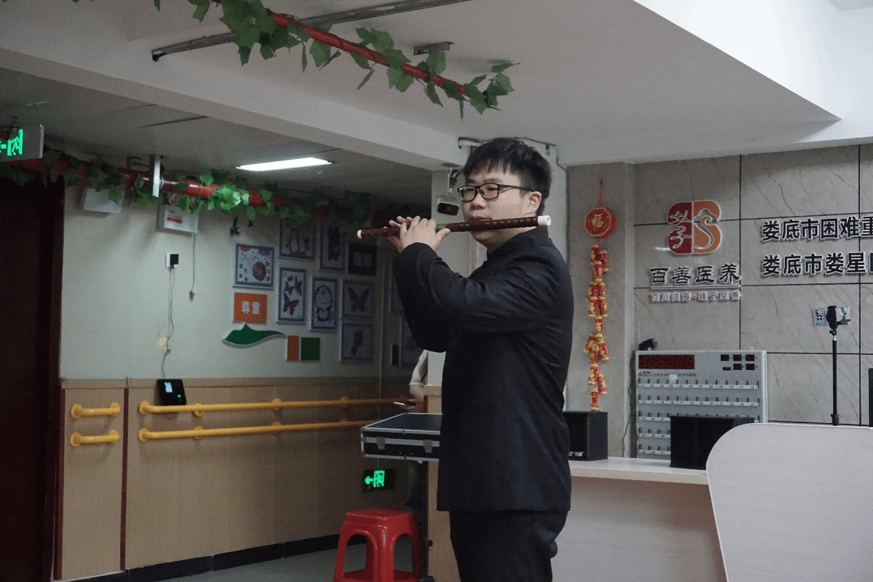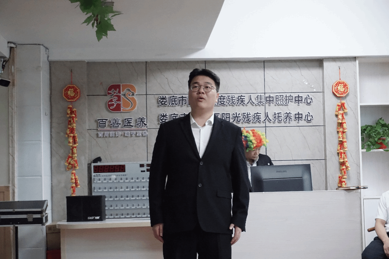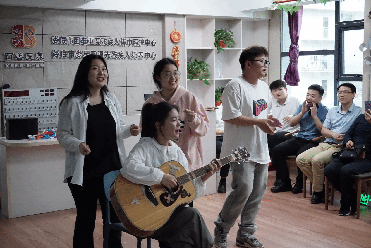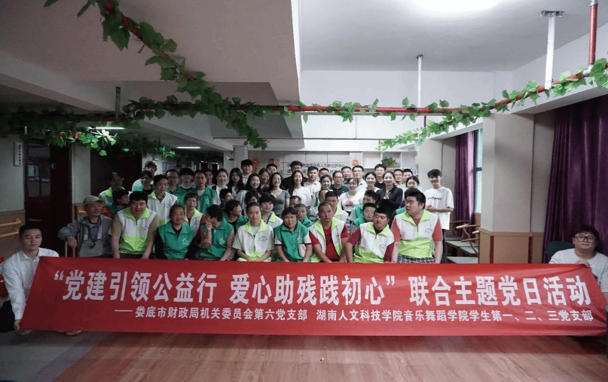 2024年5月31日下午,beat365正版唯一官网必一音乐舞蹈学院学生第一、二、三党支部在第三党支部书记朱璐老师的带领下来到娄底市娄星区阳光残疾人托养中心,与娄底市财政局机关委员会第六党支部共同看望正在接受康复治疗的残障人,开展“党建引领公益行,爱心助残践初心”主题党日活动,为他们送去关心和慰问。