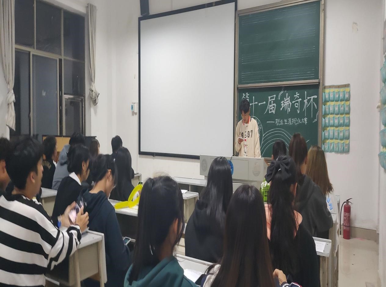 在主持人宣读完本次比赛的流程及评分标准后,参赛选手依次上台进行演讲答辩。他们根据个人职业规划测评系统的测评结果,结合自身的实际情况,对个人职业生涯主客观条件进行测评、分析、总结,还对个人的兴趣爱好和能力特点进行综合分析与权衡。参赛选手结合时代特点,根据自己的职业倾向,确定其最佳的职业奋斗目标,并为实现这一目标做出行之有效的安排。