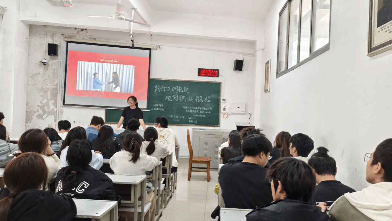 为将文明礼仪与职业规划结合起来,让同学们明白两者之间相互促进的关系,2024年11月15日中午,音乐舞蹈学院在逸夫楼开展“践行文明礼仪,规划职业航程”主题团课,24级全体同学参加了本次活动。