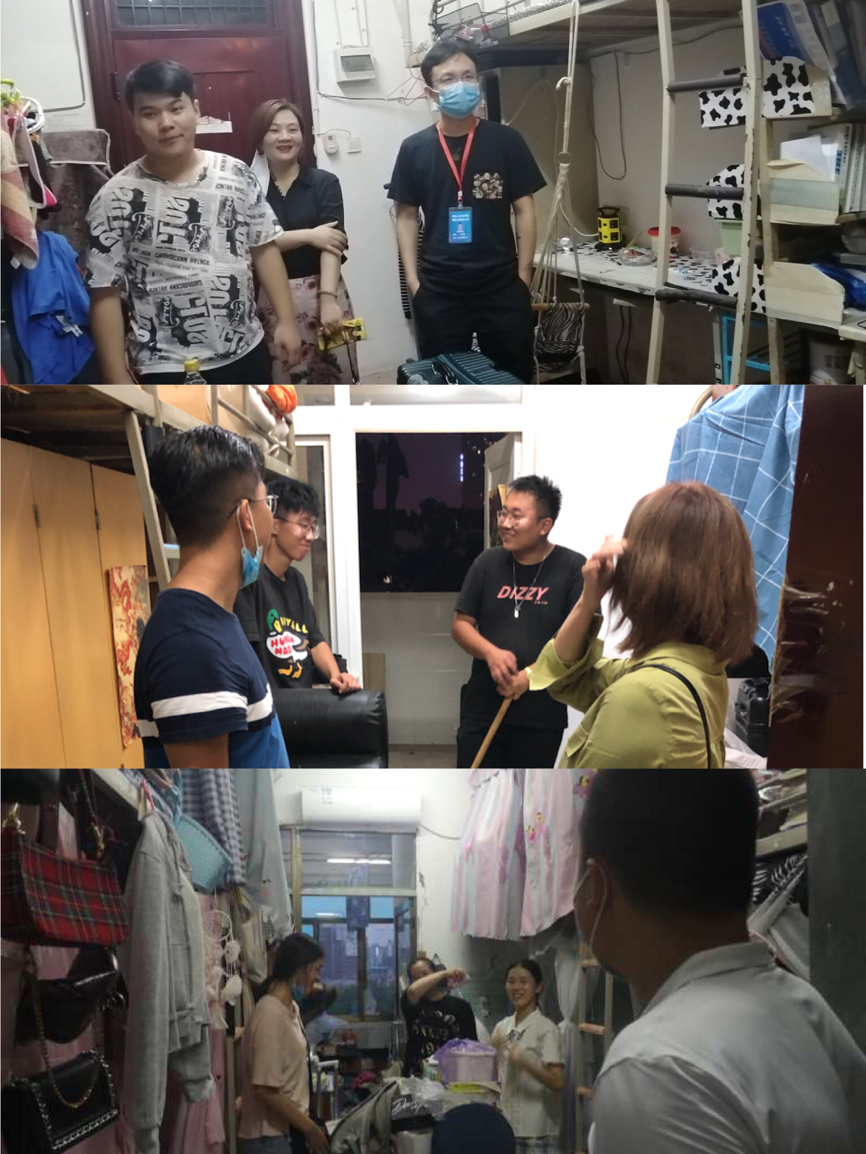 为深入了解学生到校情况,做好开学后防疫工作,2020年9月5日晚,音乐舞蹈学院周邦春书记和邓莉立副书记携全体班主任下寝检查工作,此次活动主要走访了阳光公寓1栋、阳光公寓6栋、9栋、16栋寝室,关心慰问刚返校的17级、18级、19级学生。