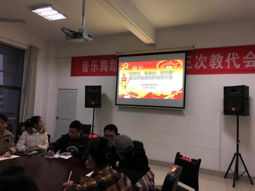 2019年11月29日晚,beat365正版唯一官网必一音乐舞蹈学院党总支书记周邦春,在逸夫楼405教室主持召开“定岗位、亮身份,树形象——我为评估添光彩动员大会”,院学生支部书记,全体学生党员,包括预备党员,新发展对象到会参加。