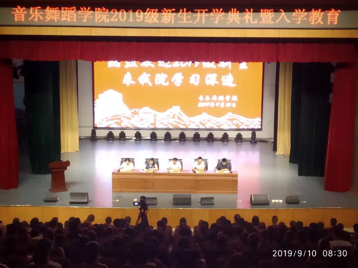 此次大会由党总支书记周邦春主持,会上周邦春书记致欢迎新生辞并宣讲新生入学须知,接着由院长谢坚强致开学辞并介绍我院情况。而后,由吴扎拉·涛副院长就学院整体概况作介绍。紧接着,由教务处主任唐博老师作为老师代表发言,唐博老师就“学习、生活、情感”三个方面做了主要发言,随后,由老生代表王谦惠、巩浩代表老生发言,他们以自己的学习和生活经验对新生做了分享,其次,新生代表于聪代表新生发言,她对大学未来的规划和对学业技能的知识方面做主要发言。随后,副院长刘利连就以一个大姐姐的身份告诉新同学需要注意的事项和对自己未来的把握。再次,党总支副书记邓莉立就学院学风建设和常规管理工作做了主要说明,她强调“音乐舞蹈学院是每个人梦想升级的地方,梦想有多大,舞台就有多大,要有我命由我不由天的坚定意志,合理规划,确立新学习目标。”最后,党总支书记周邦春做会议总结发言,周邦春书记强调“要认真学习学生处分、日常行为准则和学生条令条例,要有一个时刻严格要求自己意识形态,做一个有梦想、敢担当、团结协作、注重诚信培养感恩品德的大学生”。