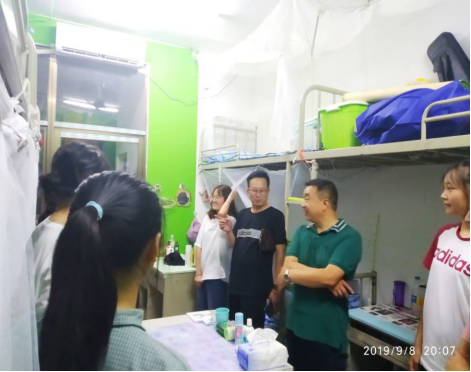 为了迎接2019级新生的到来,让新生更快的适应新环境,适应新的学习和生活,顺利、平稳地实现从高中到大学的过渡。2019年9月9日晚上7点30分,音乐舞蹈学院院长谢坚强、党总支书记周邦春、副院长吴扎拉涛、副院长刘利连、党总支副书记邓莉立、全体辅导员及19级新生班主任下寝室慰问看望新同学。