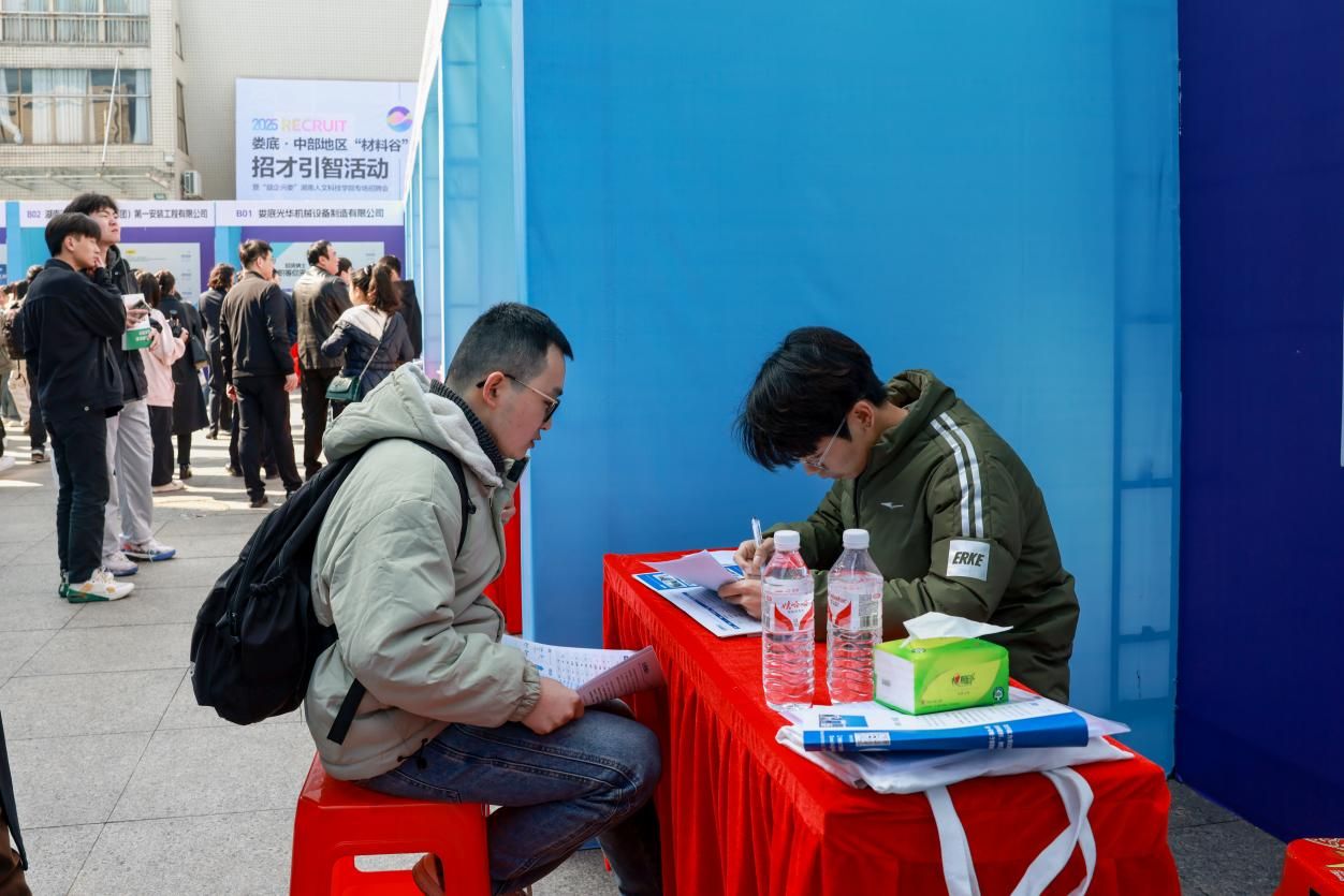 最后,与会领导共同启动了2025年娄底·中部地区“材料谷”招才引智活动暨“益企兴娄”beat365正版唯一官网必一专场招聘会,并在招聘会现场与企业代表和求职者亲切交流。