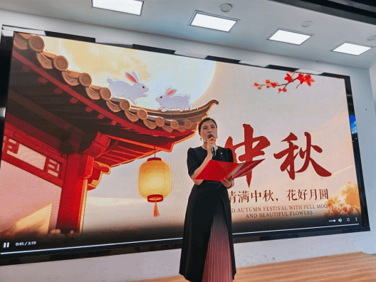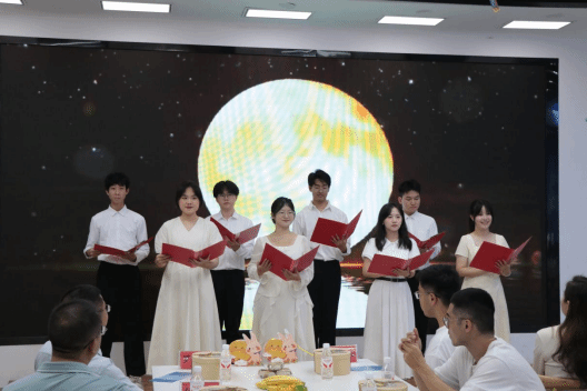 诗会在《诗词里的中国》的深情朗诵中拉开帷幕,朗诵者深情并茂,迅速将观众带入古典诗词的优美意境。整场演出共呈现十二个精彩节目,涵盖经典诗词朗诵、二胡独奏、古典舞蹈等艺术形式。音乐舞蹈学院唐博老师、教育学院张梅老师与罗斯琪老师、文学院的王文静老师与贺禧老师以及来自各学院学生代表及青莲文学社成员联袂登台。悠扬的乐曲、动人的朗诵与灵动的舞姿交织相融,会场气氛温馨而热烈,互动环节更是点燃了全场的参与热情,师生们在沉浸式的文化体验中,共同感受中秋的诗意与团圆之情。