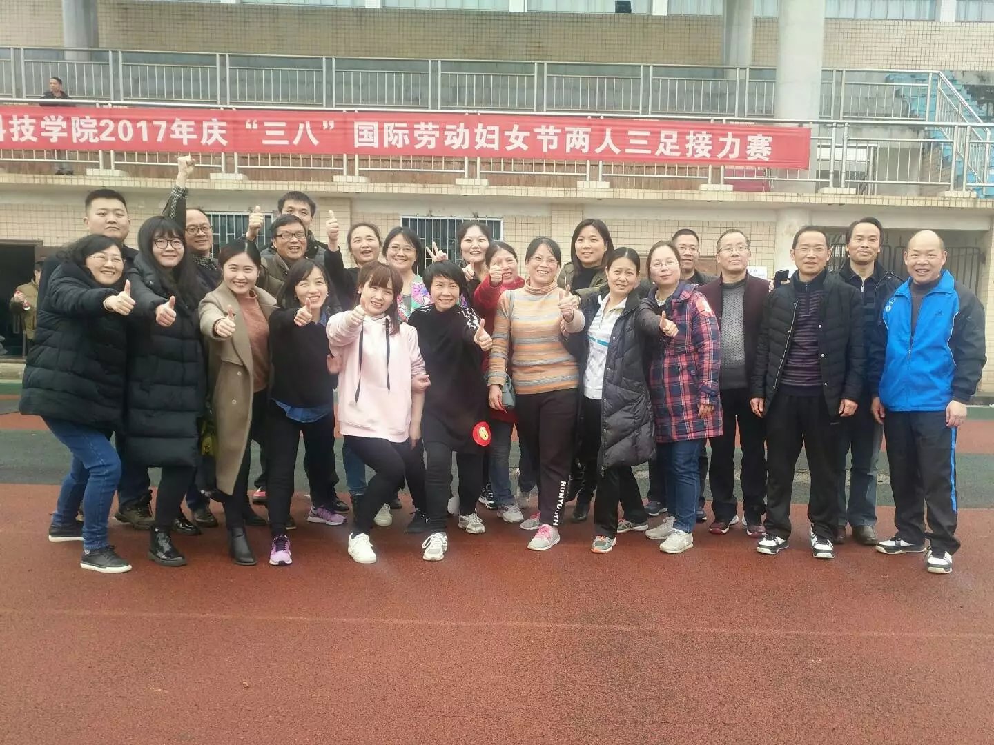为了迎接"三八"妇女节的到来,3月7日下午,由学校工会举办的两人三足接力赛,在beat365正版唯一官网必一田径场欢乐进行着。在校所有男教师们陪同所有女教师们共同参与了此次活动。