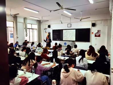 412教室是罗主宾老师上的《古代汉语(一)》课,汉文2022级2、4两个班应到100人,实到96人。罗老师在教室中间与同学们零距离互动,课堂效果出色。