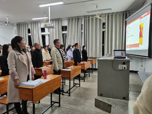 会议严格按照党组织接受预备党员程序,大会开始,所有参会人员起立,奏唱国际歌。随后,文学院党总支书记尹钟宏同志发言,告诉我们作为党员后,需要承担的责任与义务,要牢记党员身份,认真履行党员的责任和义务。发展对象们逐一向党组织汇报自身对党的认识、入党动机、个人经历以及在校表现等,其第一、第二入党介绍人分别向大会介绍其主要政治思想、学习、工作生活等情况,表明意见。随后,请与会学生正式党员和预备党员就该同志的发展分别发表意见。最后,请与会6名正式党员及学生第一支部书记颜术寻老师就该同志的发展,开始无记名投票,工作人员统计投票结果。