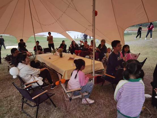 会后,教师们来到户外,进行了摘桔子、烧烤、唱歌比赛等工会活动。