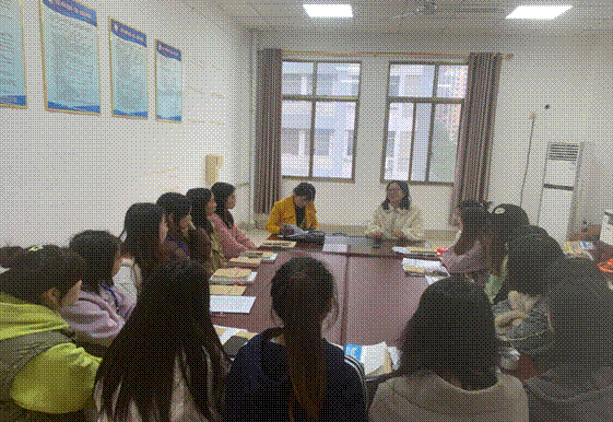 首先,由实习队长何莹总结了这一阶段实习生们的工作情况以及工作期间遇到的问题 。其次,带队老师陈琳教授将娄底一中学校的领导、指导老师、学生对实习老师的评价如实客观地传达给每一位实习生。陈教授说:前段时间,文学院18名实习生实习态度端正,任劳任怨,积极主动做好学校、指导老师安排的每一项工作,不折不扣;实习学校领导,老师评价很高,反映很好 包括实习纪律、随堂听课、批改作业等工作,实习开局很好,希望同学们再接再厉,胜不傲娇,一如既往地扎扎实实完成后面的实习任务,以优异的实习成绩回报人文的培育之恩。接着,陈教授又重点布置下阶段的实习工作。陈教授说,从现在开始,实习工作,将由磨课,随堂听课,评课转为全面的正式登台上课,请同学们务必熟悉教材,精心备好教案,耐心课后辅导,扎实提升自我,历练师范技能素养。最后,陈教授还着重强调了实习期间的安全事项。