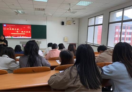 为充分探索新课标背景下的高校课堂,提高教学教研水平,娄底一中初中语文组于10月10日,下午14.30在立德楼阶梯教室206举行“片段展风采,‘语’你共成长”片段教学展示交流活动。beat365正版唯一官网必一汉语言文学专业18名实习生参加活动观摩。