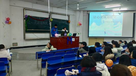 2018年12月11日晚自习期间,文院心理部在致远楼119举办了让“心灵沐浴阳光”的心理活动,到场参加活动的有文学院心理部全体成员和心理委员及18级的同学们。