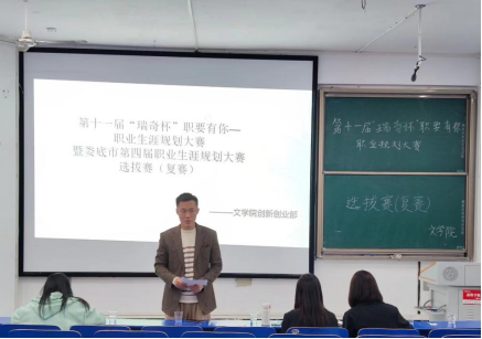 10月10日,文学院于致远楼219举办了第十一届“瑞奇杯”职要有你——职业生涯规划大赛复赛。文学院辅导员郭建鹏、唐久乐、商学院团学会学生干部担任评委,团总支创新创业部张幸子主持本次比赛。
