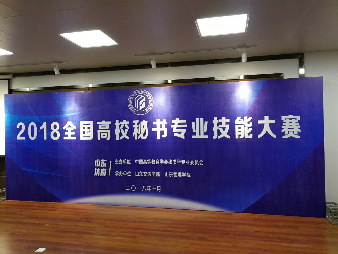 考察的第一站,是到济南观摩中国高等教育学会秘书学专业委员会举办的全国高校秘书学专业技能大赛。以往,文学院组队参加了4届全国商务秘书专业技能大赛,秘书学专业委员会举办的赛事还没有参加过。此次赴济南,了解了秘书学专业委员会举办的大赛的赛制和内容,看到了各地选手的出色表现,增长了见识,开阔了眼界。赛后,张峰老师到山东师大参观,与山东师大秘书学专业负责人进行了交流。