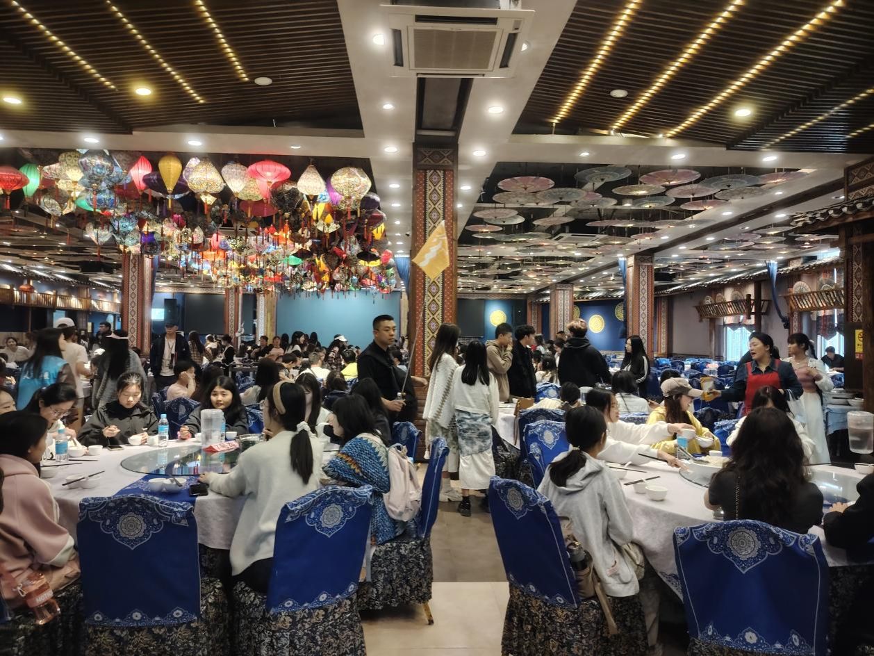 一场集广西侗族苗族风情于一身的大型歌舞盛宴,于26日晚在蝴蝶泉景区登场。《侗王夜宴》演绎了传承千古的原始场景,敬酒迎宾、寨花对歌、行歌坐月等等,侗族与苗族同胞用他们磁性的歌喉、奔放的舞蹈感染着师生,师生也渐渐融入进去,在苗乡侗寨传统精美的建筑风雨长廊、天籁鼓楼、多耶广场中一起载歌载舞,激情狂欢。晚会结束,师生相约阳朔西街,霓虹灯与星空点亮这座小城,游人和店主构成小城的主体,繁华的街头人行漫漫。西街的夜景无一人不流连忘返。