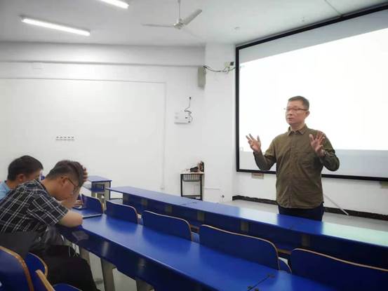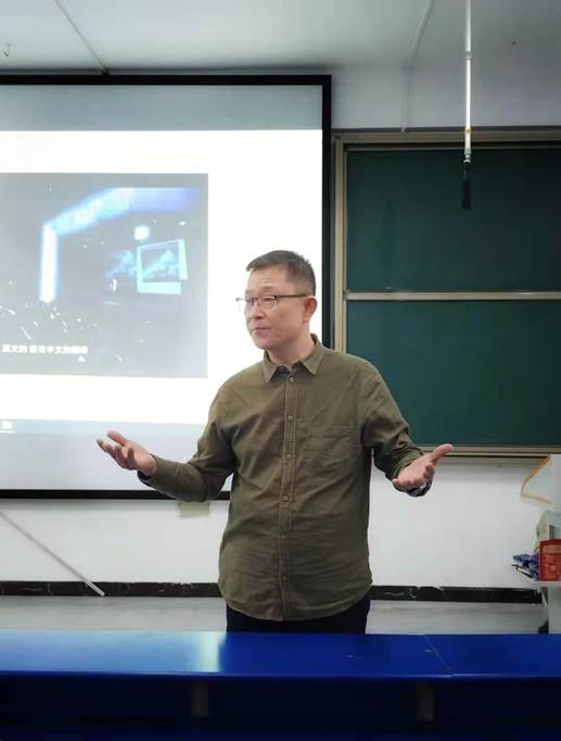 接着,张峰老师主持了文学院书记尹钟宏的专题讲座。据张老师介绍,尹钟宏书记是娄底演讲协会副会长,有着非常丰富的演讲和演讲教学经验。今晚他奉献给秘书学专业学子的讲座,题为《演讲出彩之道》。