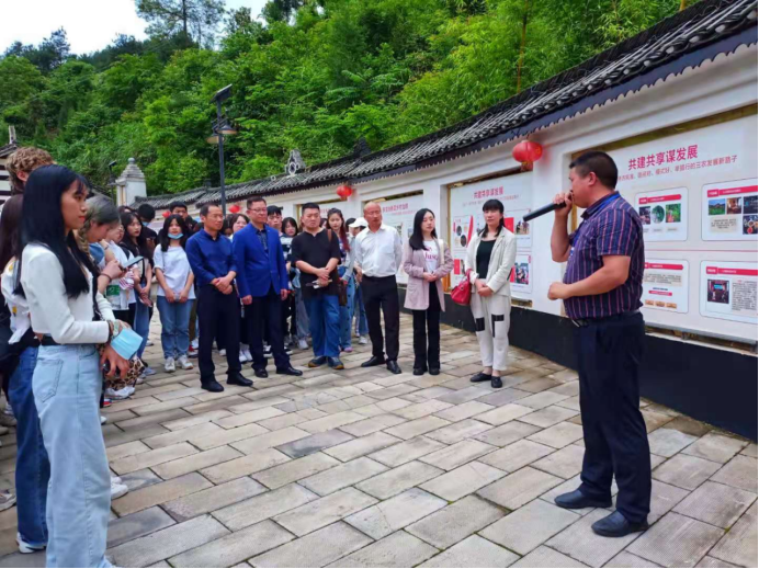 油溪桥村是如何实现从省级贫困村到全国十大乡村振兴示范村、全国文明村、全国百强特色村庄和国家级AAA景区村的完美蜕变的?这是秘书学专业师生此行探寻的重点。抵达油溪桥村,村里安排了专职讲解员,带领师生参观油溪桥村村容村貌和文化墙。讲解员一路滔滔不绝,从带头人彭育晚书记的回村任职,到农民自身思想观念的转变,从村规民约,到移风易俗,从保护环境到精神脱贫,描绘出了一条清晰的乡村振兴之路。
