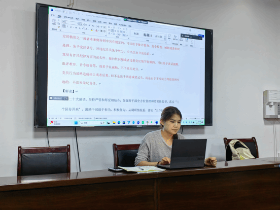 接着由第一支部齐玉姣同志担任主讲人,进行政治学习,对《中国共产党纪律处分条例》新增或修改的重点条纹进行详细解读。此外,主讲人围绕生活实际、典型案例讲述党员干部的义务与权利,同时也强调严守党纪党章的重要性。