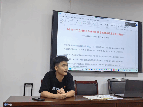 为深入了解社会就业形势,增强学生党员的党性观念,争做有理想、敢担当、能吃苦、肯奋斗的新时代好青年,2024年5月22日,文学院学生第一、二支部开展《学习先进榜样,汲取奋进力量》的主题党课及《党纪教育学习》的政治学习。
