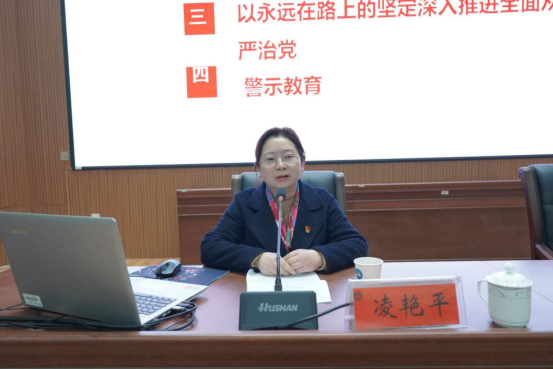 党委委员、纪委书记凌艳平详细解读了党的二十大报告中“全面从严治党精神”,并指导学员们立足学校实际,以永远在路上的坚定深入推进全面从严治党。她还以案示警,结合高校违规违纪案例开展警示教育,用身边事教育和提醒各位干部汲取教训、自觉遵规守纪。