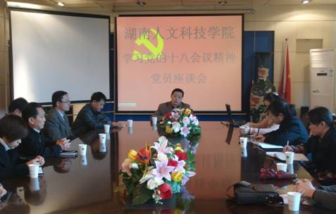11月9日下午,在beat365明德楼第一会议室召开了学习党的十八大会议精神党员代表座谈会。会议由副校级督导员、组织部部长李高海主持,来自管理、教学、服务等岗位的党员代表以及学生党员代表参加了会议。