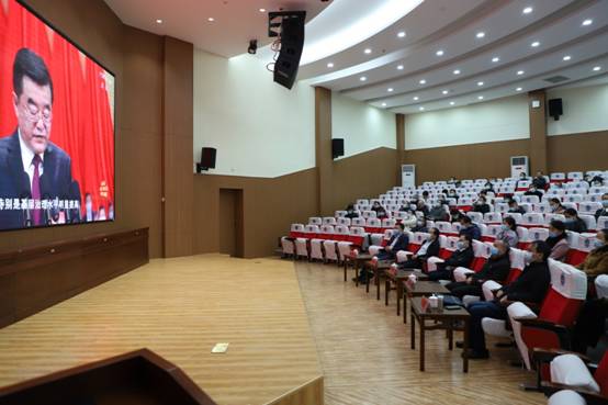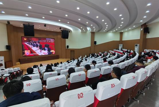 11月25日上午,机关党委组织机关全体党员在匠成楼报告厅集中收看中国共产党湖南省第十二次代表大会开幕盛况现场直播。