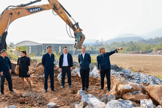 盛明科一行实地考察蔬菜大棚、即将投产运营的竹木加工厂